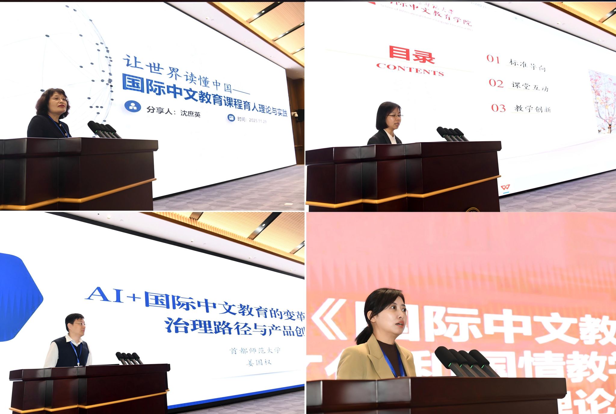 主旨报告环节由河南大学国际教育学院院长李香玲与河南理工大学国际合作交流处处长李新娟分别主持。沈庶英教授从课程思政角度,阐释如何通过多模态资源讲好中国故事,构建“课堂-校园-社会”联动的育人机制;冯丽萍教授则通过分析课堂互动行为,提出以教师高效互动、言语优化提升教学质量的具体路径;姜国权教授探讨AI赋能国际中文教育的变革逻辑以及语言智能驱动的新型教学模式;乐琦教授系统解读《国际中文教育用中国文化和国情教学参考框架》,为未来课程设计与教学创新提供了重要参照。