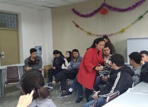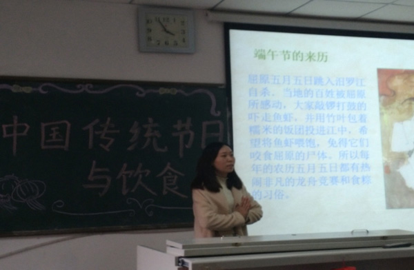 为了加强与留学生的交流,2016年10月28日下午3:00在辛永芬教授的指导下举办了“文化沙龙—中国传统节日与饮食”的文化活动,邀请了来自不同国家的留学生,此次活动以中国传统节日春节、元宵节、端午节和中秋节以及每个节日的主要饮食为主线,还介绍了中国各地的名吃。如:北京的冰糖葫芦、武汉的热干面、重庆的火锅等,此次活动不仅结合了饮食也讲解了文化,不仅有知识,也有体验,让留学生在轻松愉悦的活动中,对中国的节日和饮食又有了更深层的理解。