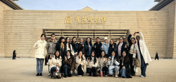 2025年12月30日下午,我院来自泰国、老挝、越南、津巴布韦等国家的15位国际中文教育硕士专业学位研究生参观了开封博物馆,并体演“宋代点茶”。学院主管研究生培养的副院长翟秋敏教授和“茶科学与文化”河南省优质国际化课程主持人刘绣华教授全程参加了本次活动。