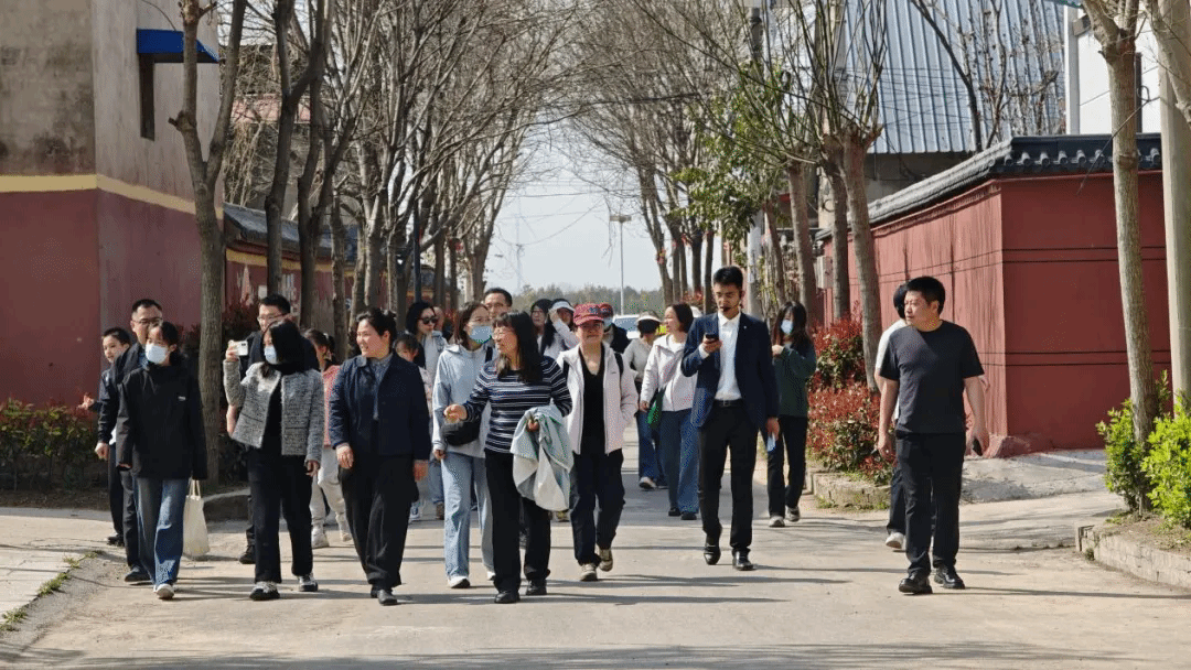 活动当天,教职工们一路欢声笑语,满怀期待奔赴春日之约。抵达祥符区罗王镇胡寨村后,在罗王镇政府工作人员的带领下,大家首先参观了胡寨村初心湖,全面了解罗王镇以党建引领乡村全面振兴的创新实践。参观过程中,工作人员详细介绍了当地在乡村建设、产业培育、生态保护等方面的举措与成效,让大家深切感受到乡村振兴为农村发展带来的蓬勃生机与无限活力。