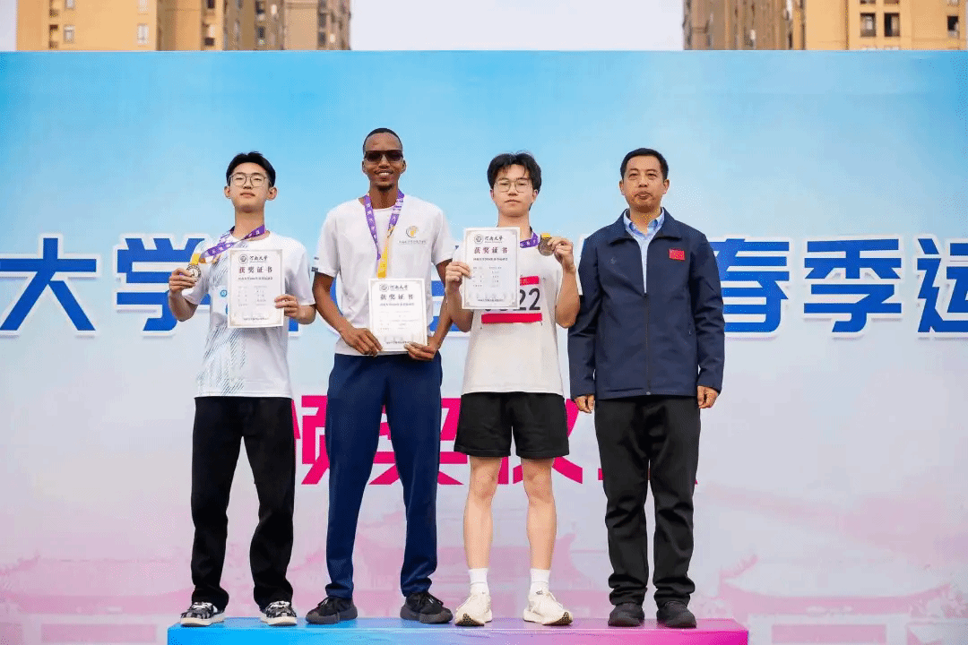 赛场上,运动员奋勇拼搏、屡创佳绩。博茨瓦纳留学生高盛宇发挥出色,荣获跳高第一名、跳远第二名;俄罗斯留学生尼基塔在男子 800米项目中奋力冲刺,勇夺第一。学院男子团体凝心聚力,荣获总分第六名。教职工赛道同样精彩不断,刘向前老师以坚韧毅力展现了我院教师的良好精神面貌,在教职工3000米青年项目中表现突出,荣获第六名。