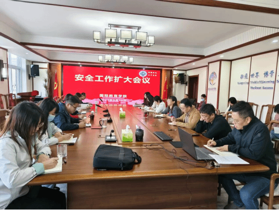 9月28日下午3时,李香玲院长向全体班子成员详细传达学校“双节”假期安全稳定工作会议精神,并结合我院留学生管理和安全巡防工作实际部署学院安全排查工作,对学院重点区域、重点人员、重点工作进行全面排查,要求各分管领导明确职责分工,夯实主体责任,坚持“谁分管、谁负责”,对会议强调的留学生舆情安全、师生出行、师德师风、学生心理健康等安全防范核心工作自评自查,并制定完善处突应急预案。